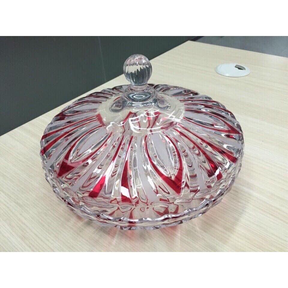 ✨Khay đựng mứt tết thủy tinh họa tiết hoa đỏ
