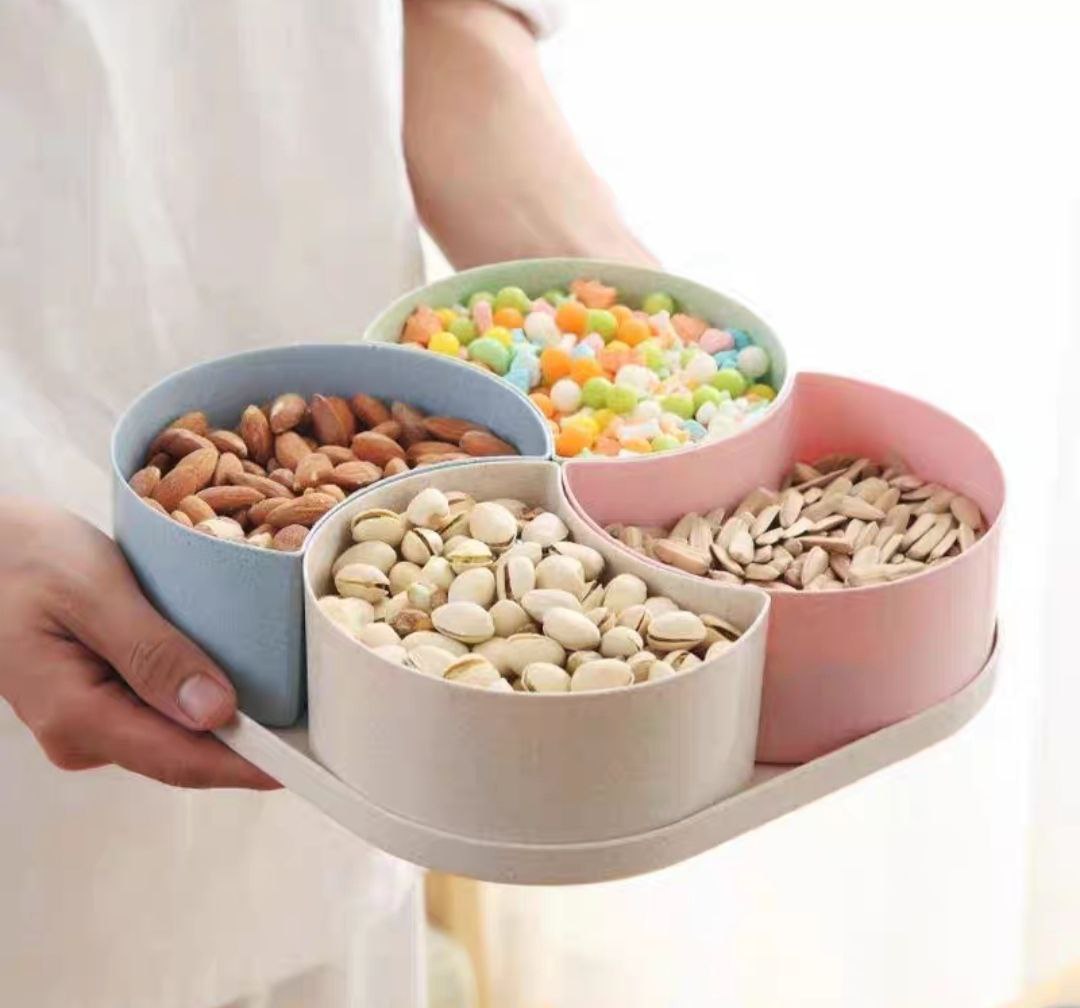 - Khay mứt có 4 ngăn riêng biệt đựng bánh kẹo, mứt tết
