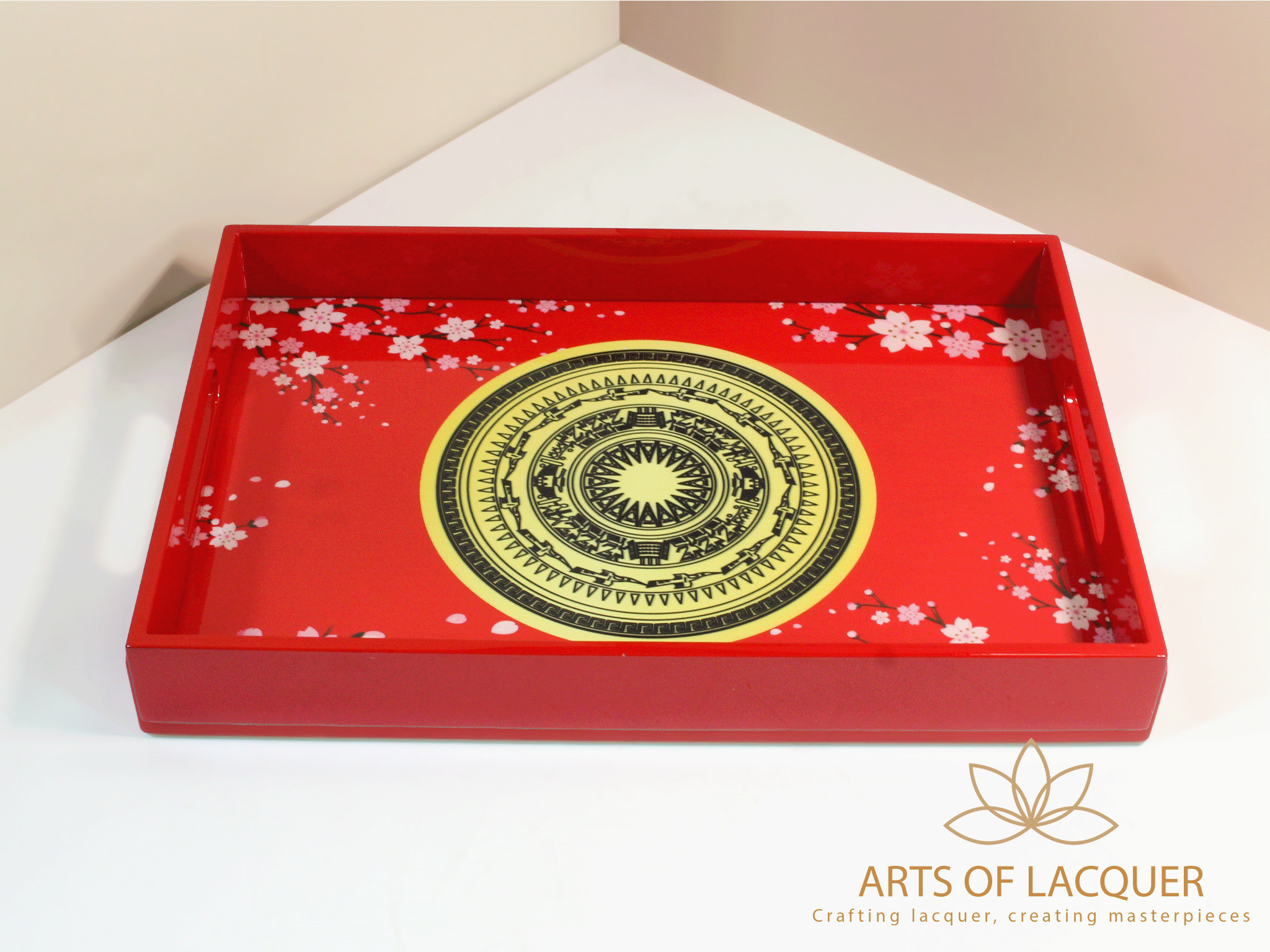 ✨Khay Sơn Mài Hình Trống Đồng Hoa Đào