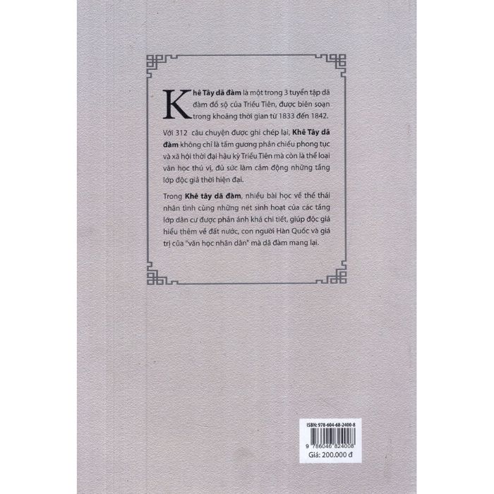 Với 312 câu chuyện được ghi chép lại, Khê tây dã đàm không chỉ là tấm gương phản chiếu phong tục và xã hội thời đại hậu kỳ Triều Tiên mà còn là thể loại văn học thú vị, đủ sức làm cảm động những tầng lớp độc giả thời hiện đại.