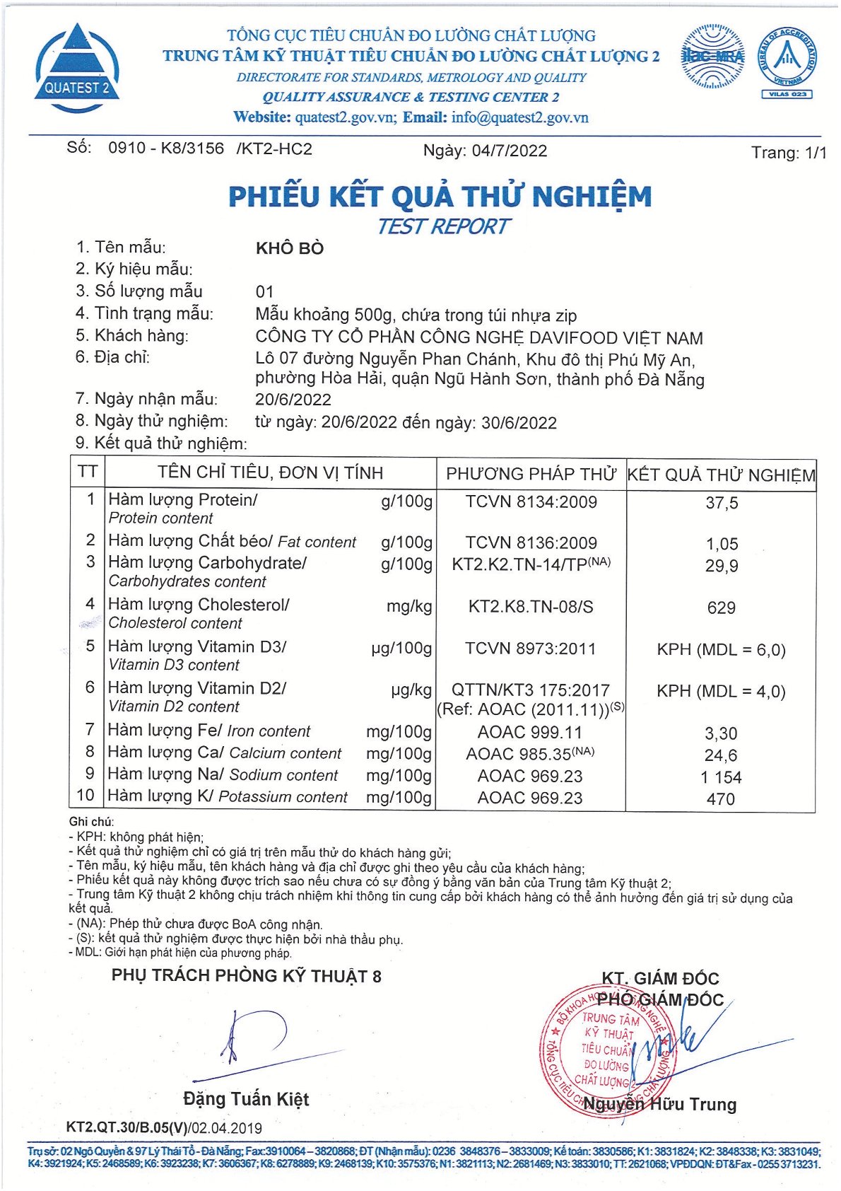 - Khô bò KINBE BEEF JERKY là sản phẩm của Công ty Cổ phần Công nghệ Davifood Việt Nam nghiên cứu và phát triển; được làm từ 100% thịt bò tươi, kết hợp với các loại gia vị hoàn toàn tự nhiên được lựa chọn kỹ lưỡng, trên dây chuyền thiết bị công nghệ hiện đại khép kín, theo tiêu chuẩn HACCP, giữ nguyên hương vị và giá trị dinh dưỡng, an toàn vệ sinh thực phẩm.