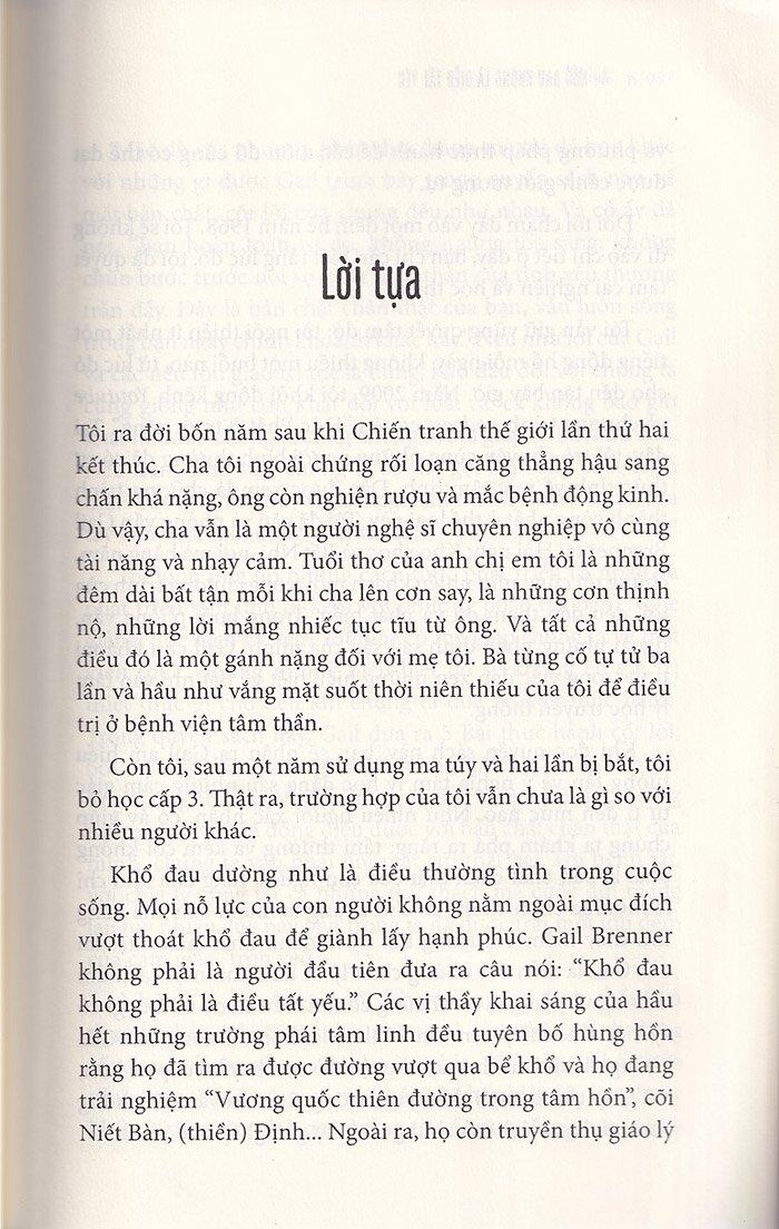 - Nhiều người hay tự hỏi: “Làm sao m.ình có được cuộc sống tốt nhất khi đời luôn đầy rẫy những biến cố khôn lường?” Qua cuốn sách của Gail Brenner, những công cụ hữu ích sẽ được trao cho bạn nhằm giúp bạn thoát khỏi bóng ma quá khứ cũng như vượt qua các rào cản trong hiện tại. Tác giả sẽ cùng bạn học cách an tâm: bạn không cần phải thay đổi người khác, bạn chỉ cần thay đổi góc nhìn về cuộc đời, thay đổi niềm tin của bạn về bản thân, và rồi bạn sẽ có thể tận hưởng cuộc sống một cách trọn vẹn hơn. (Nance Guilmartin, tác giả của Những cuộc chuyện trò chữa lành và Sức mạnh của điểm dừng)