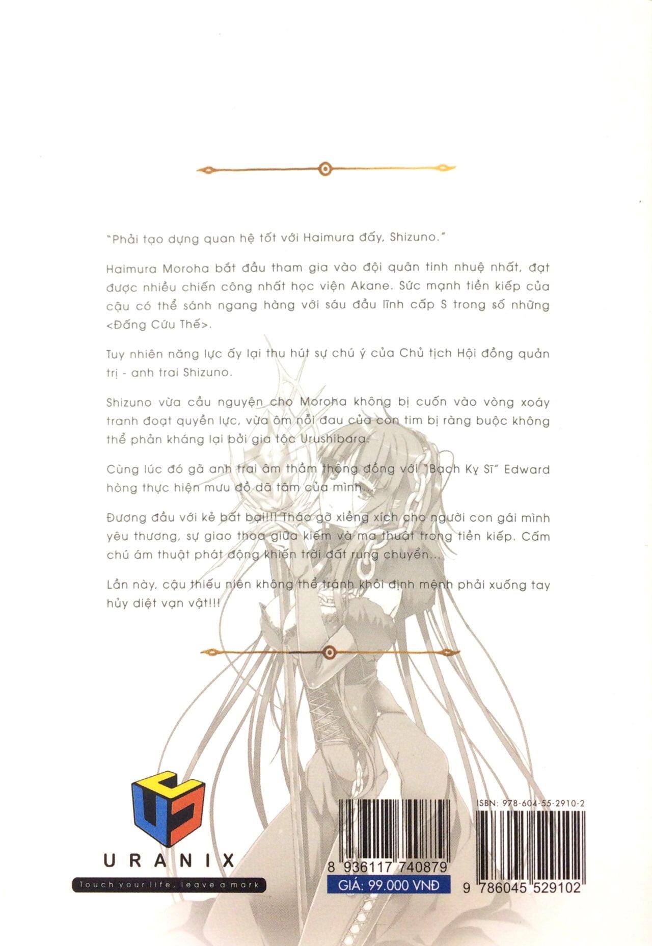Mua tại TiktokKhúc Nguyền Ca Của Thánh Kiếm Sĩ - Tập 2 Haimura Moroha bước vào niên học đầu tiên tại Học viện Akane, ngôi trường đặc biệt chuyên đào tạo <Đấng Cứu Thế> - những học sinh mang kí ức tiền kiếp của các anh hùng hoặc người vĩ đại từ kiếp trước. Tuy nhiên, khác với họ, bản thân Moroha nắm giữ đến hai kí ức tiền kiếp. Tại một thời điểm khác trong quá khứ, cậu là Flaga, người bảo vệ thánh kiếm, sánh bước bên công chúa Sarasha lật đổ cả một đế chế.