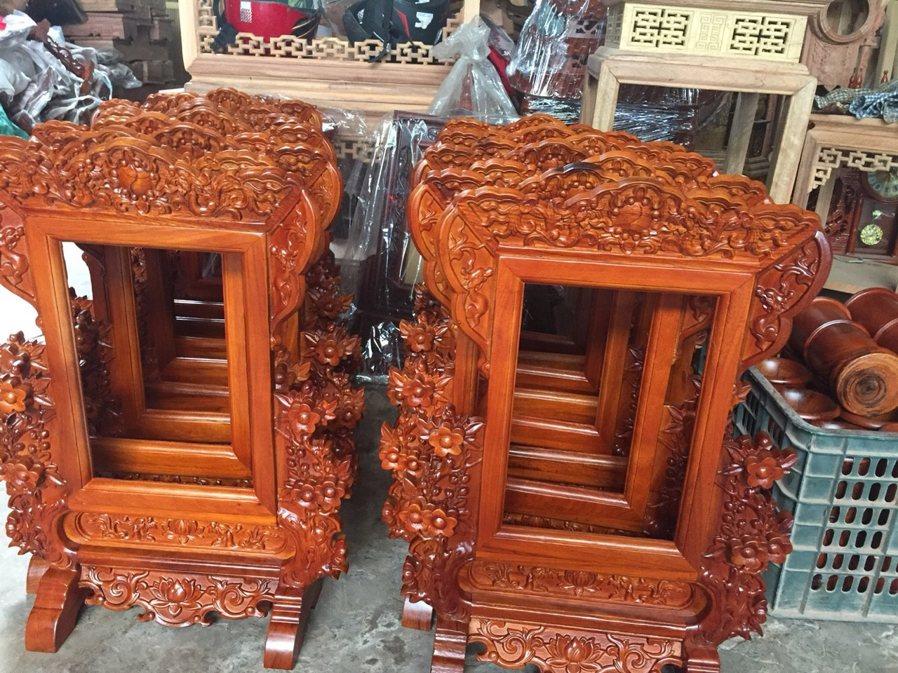 Khung Ảnh Thờ Đôi bằng Gỗ Hương Cao Cấp đục Long Ly Quy Phụng hàng Đẹp ở Hà Nội | ZalO982997569