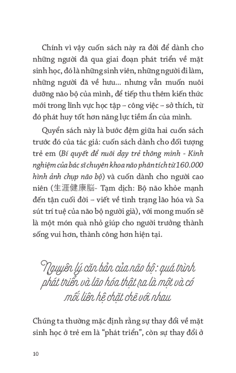 Khác với những cuốn sách "mẹo vặt ghi nhớ, bí quyết học tập" khác, cuốn sách này dựa trên nghiên cứu của 160,000 hình ảnh chụp não bộ trong các trạng thái khác nhau, nên rất đáng tin cậy! Từ nghiên cứu đó, ông đã bác bỏ những điều lầm tưởng trước nay về trí óc con người, mở ra những cơ hội để ta cải thiện sức suy nghĩ, sự tập trung, học hành, làm việc thật hiệu quả, và nhất là giảm chứng sa sút trí tuệ khi về tuổi tác lớn hơn.