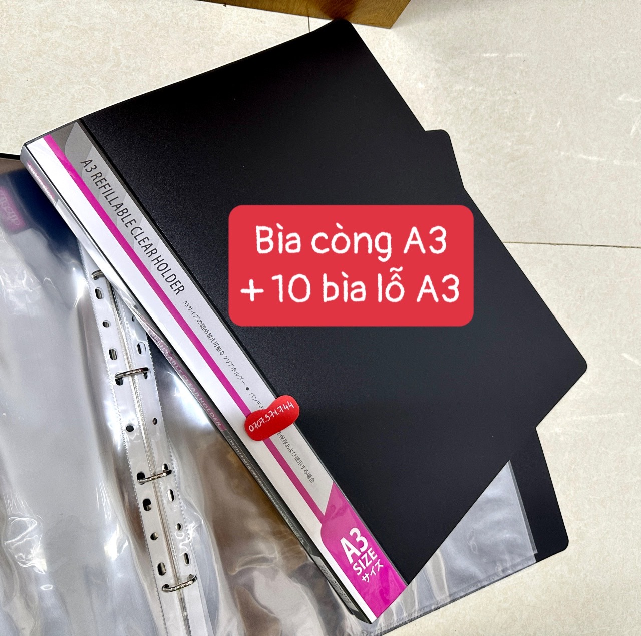 [ Kích Thước A3 ] Bìa Còng Nhẫn 2F5 Size A3 Đựng Hồ Sơ Bản Vẽ Chống Thấm Nước Kèm 10 Tờ Bìa Lỗ A3 Dày Tiện Dụng Kidario:               -Sản phẩm bao gồm 1 bìa còng + 10 tờ bìa lỗ sẵn trong combo. Khách có nhu cầu mua thêm bìa lỗ shop có bán luôn nha -Kích thước bìa còng : 350440mm, gáy cao 2F5 -Kích thước bìa lỗ: 310420mm -Thiết kế đựng vừa tờ A3 (297*420mm) để thẳng -Bìa lỗ dày dặn dễ dàng sử dụng, shop có bán xấp 10 tờ bìa lỗ riêng cho bạn dùng khi cần bổ sung thêm vào bìa còng -Bìa còng thiết kế nhựa đen nhám sạch sẽ sang sang trọng, còng nhẫn đường kính 2.5cm 4 lỗ sử dụng được bìa lỗ A3 11 lỗ -Sản phẩm là vật dụng lưu giữ giấy tờ, tài liệu, bản vẽ trở nên gọn gàng và ngăn nắp hơn. Nhà sách Sài Gòn Vina - Chuyên Cung cấp Sỉ & Lẻ các vật dụng Văn phòng phẩm, Dụng cụ Học sinh. ️ Shop chuyên cung cấp văn phòng phẩm , dụng cụ học sinh sỉ và lẻ. Kho hàng lưu trữ số lượng hàng lớn, khách hàng muốn mua bao nhiêu cũng có, mua sỉ được giá tốt.