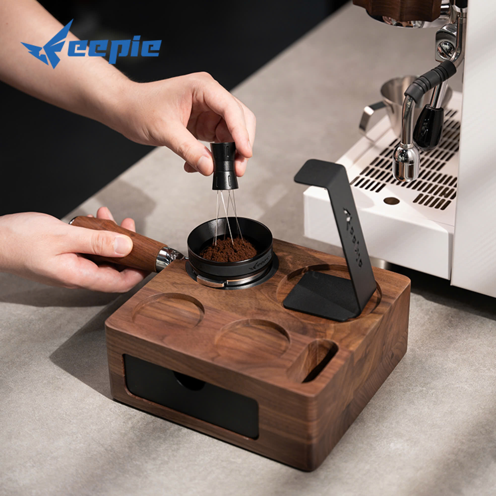 GIÁ ĐỠ TAMPER BẰNG GỖ TỰ NHIÊN PHA CÀ PHÊ MÁY ESPRESSO CAFE DE KONA Khối gỗ được làm bằng 2 loại gỗ: gỗ óc chó đen và gỗ giẻ gai châu âu.