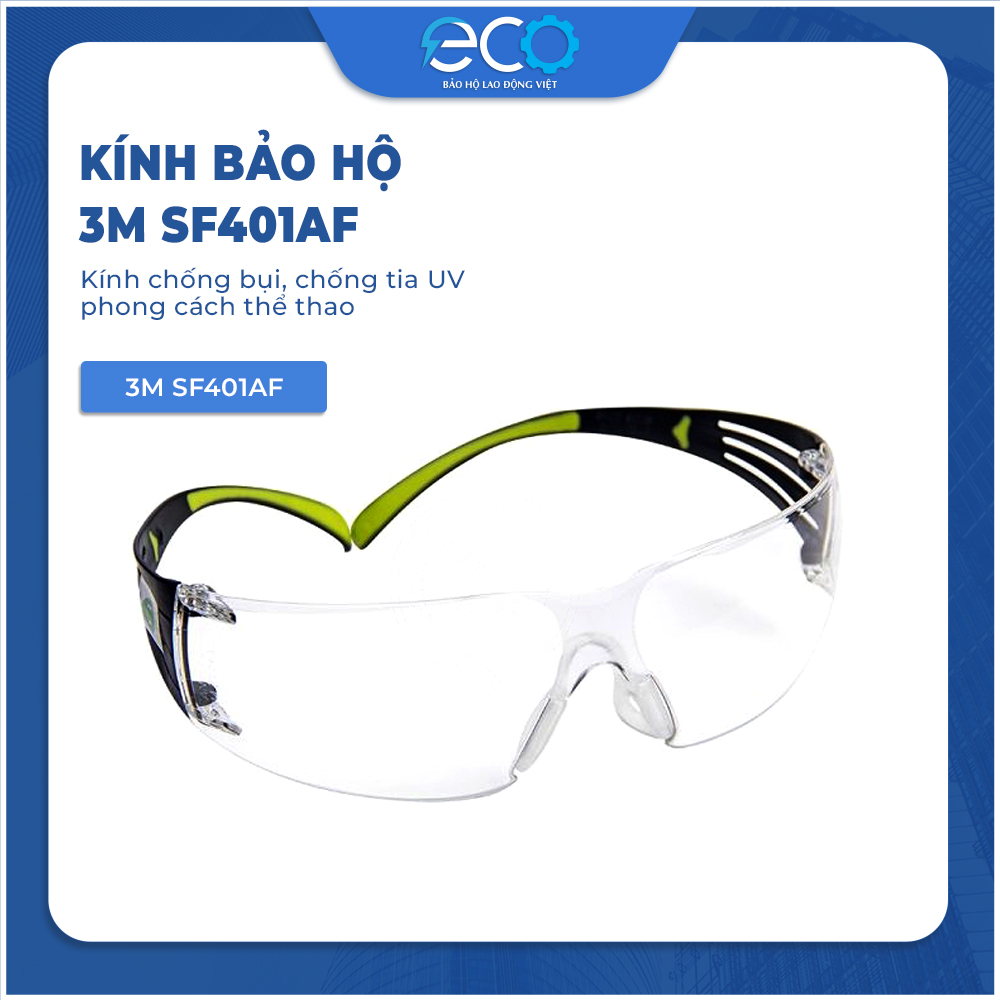 Bảo vệ mắt an toàn tuyệt đối – Đẹp như kính thời trang thể thao! Kính bảo hộ 3M SF401AF – Kính chống bụi, chống tia UV, kính được phủ 1 lớp chống trầy, chống