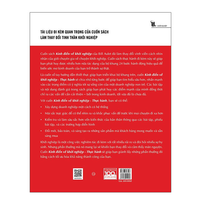 Cuốn sách Kinh điển về khởi nghiệp của Bill Aulet ra mắt trước đó đã làm thay đổi vĩnh viễn cách nhìn nhận của giới chuyên gia về chuyện khởi nghiệp. Cuốn sách “Kinh điển về khởi nghiệp – Thực hành” đi kèm này không thể thay thế cho cuốn Kinh điển về khởi nghiệp mà là một tài liệu bổ sung. Nó như là cuốn sổ tay hướng dẫn thiết thực giúp bạn triển khai bộ khung trên, cuốn Kinh điển về khởi nghiệp – Thực hành sẽ chia nhỏ từng bước để giúp bạn tìm hiểu sâu hơn, nhấn mạnh vào các trọng điểm có ý nghĩa tới sự sống còn của một doanh nghiệp non trẻ. Các bài tập và nội dung đánh giá trong sách giúp bạn phát huy các điểm mạnh của mình đồng thời chỉ ra các vấn đề cần cải thiện – bởi trong kinh doanh, tốt vừa đủ là chưa đủ.