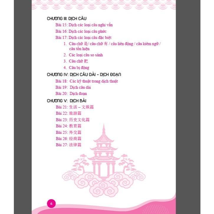 CHƯƠNG I đến CHƯƠNG V được biên soạn có độ khó tăng dần, lần lượt phát triển theo thứ tự; (a) dịch từ; (b) dịch cụm từ; (c) dịch câu ngắn; (d) dịch câu dài; (e) dịch đoạn; (f) dịch bài thông qua các chủ đề phong phú, các lĩnh vực thường gặp trong môi trường công việc thực tế như: ngoại giao, du lịch, đời sống, thương mại, pháp luật, giáo dụ Ngoài phần lý thuyết được trình bày một cách ngắn gọn, khoa học và hệ thống, các kiến thức chính đều có phần đối chiếu vị trí, cách dịch của hai ngôn ngữ, qua đó, giúp người học có thể dễ dàng hiểu, nhớ và vận dụng các kiến thức ngay sau khi học. Cuốn sách Kỹ Năng Biên Phiên Dịch Trung – Việt, Việt – Trung thực chiến có thể hỗ trợ một cách hiệu quả nhất cho người học nhờ những ưu điểm nổi bật sau: