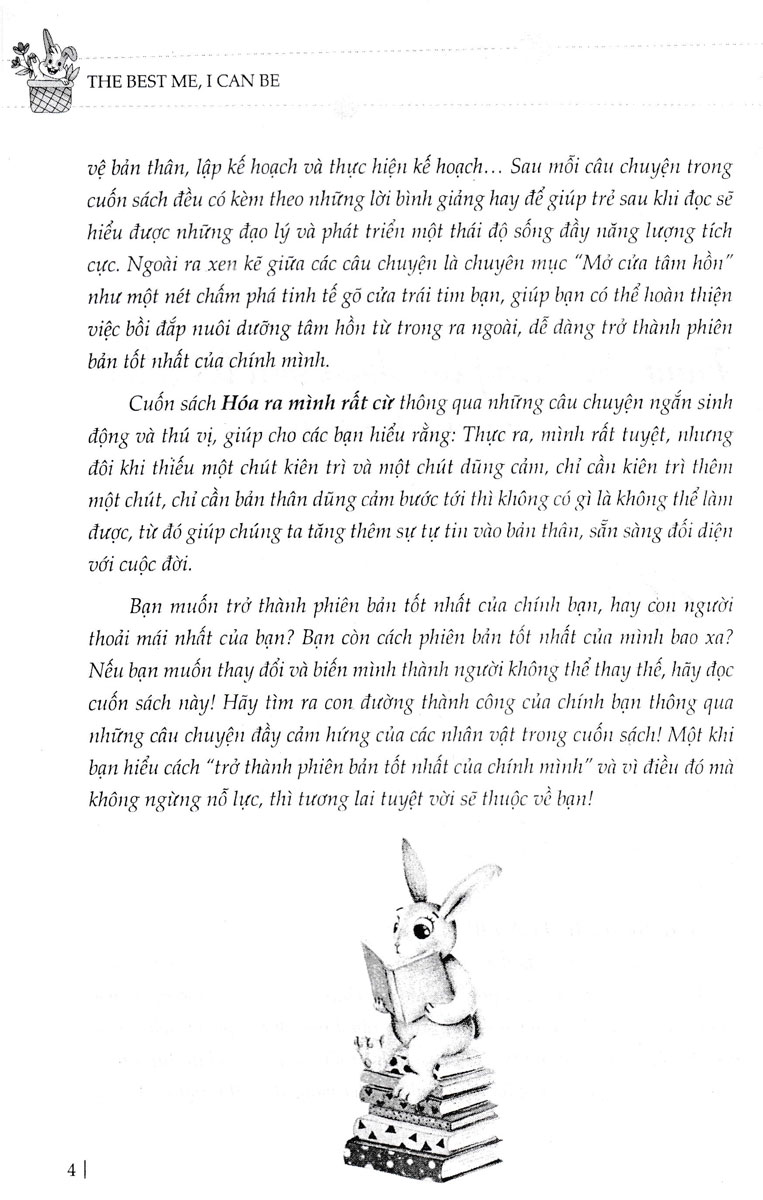 Kỹ Năng Sống Dành Cho Học Sinh - Hóa Ra Mình Rất Cừ thông qua những câu chuyện ngắn sinh động và thú vị, giúp cho các bạn hiểu rằng: THực ra, mình rất tuyệt, nhưng đôi khi thiếu mộ chút kiên trì và một chút dũng cảm, chỉ cần kiên trì thêm một chút, chỉ cần bản thân dũng cảm bước tới thì không có gì là không thể làm được, từ đó giúp chúng ta tăng thêm sự tự tin vào bản thân, sẵn sàng đối diện với cuộc đời.