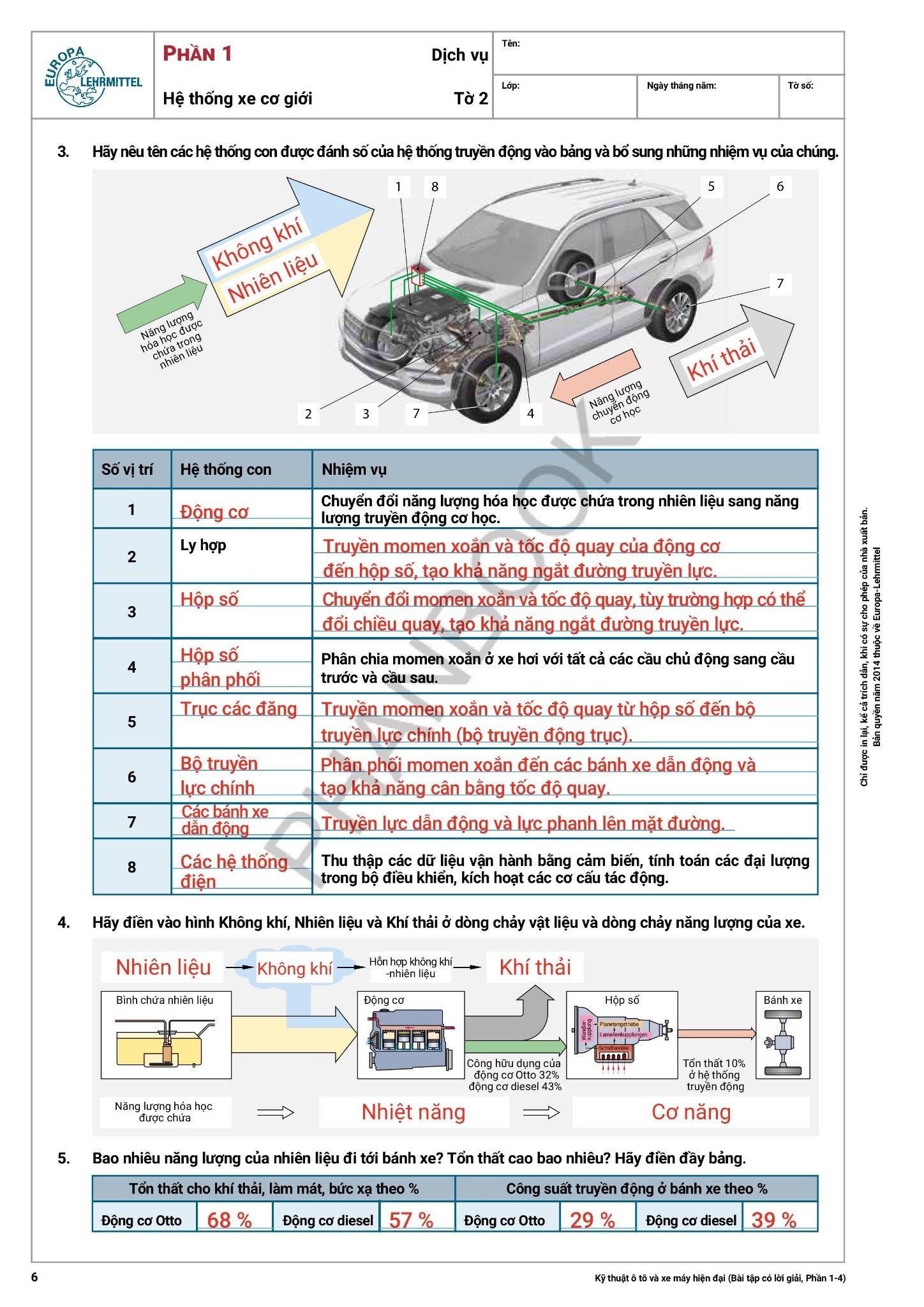 Kỹ Thuật Ô Tô Và Xe Máy Hiện Đại - Bài Tập Có Lời Giải