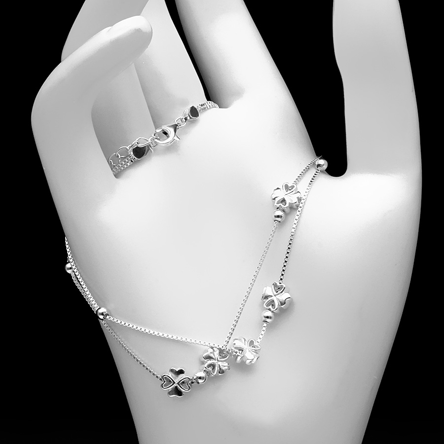 Lắc Chân Nữ Bạc Hiểu Minh LC202X Cỏ 4 Lá Dây Kép Bạc Ý