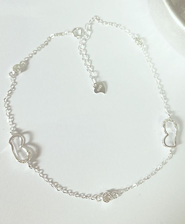 Lắc chân được chế tác từ bạc cao cấp S925  Lắc chân với thiết kế đơn giản bao gồm hai trái tim đính đá thể hiện tình cảm nồng nàn của người tặng và sự
