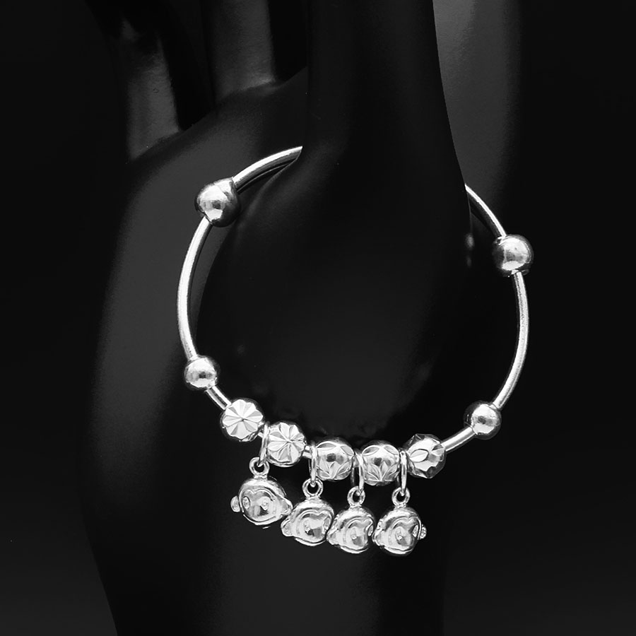 Vòng , Lắc Tay Chân Cho Bé Bạc Ta Dạng Kiềng Chuông Họa Tiết Phay BẠC HIỂU MINH LTE536