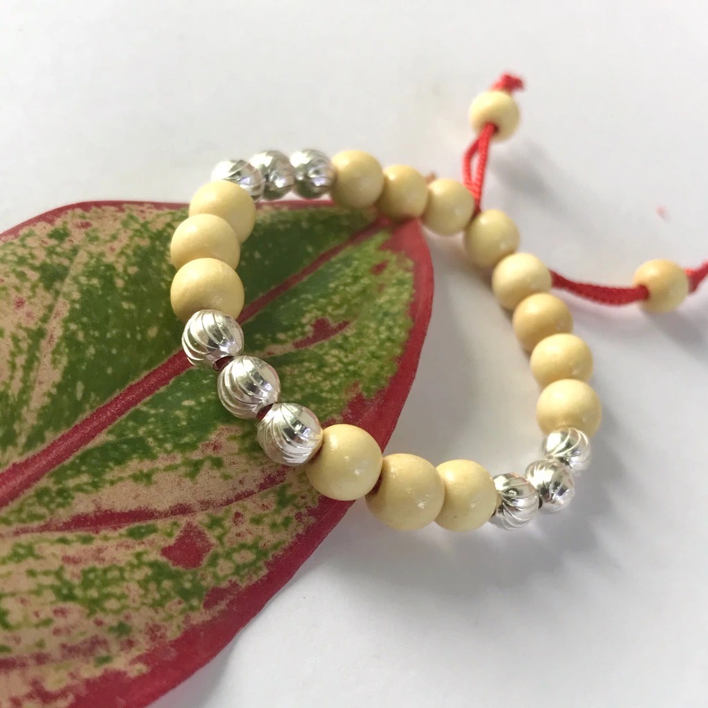 Lắc Tay Lắc Chân Trẻ Em Vòng Dâu Tằm Bạc Hiểu Minh LTE051 làm từ dâu tằm Việt Nam có tác dụng trừ tà ma, vong âm theo và âm khí lạnh.