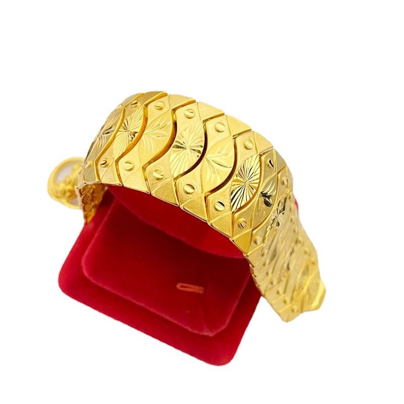 Mua tại TiktokChất liệu: hợp kim đồng mạ 24k tạo độ sáng bóng. Sở hữu công nghệ mạ tĩnh điện mang lại độ bền cao cho sản phẩm Chiều rộng mặt dây 3.0 cm kết hợp độ dày 0.3 cm hoa văn được đúc tinh xảo, sắc nét Chu vi tối đa của sản phẩm dài 22 cm các mắt được nối với nhau thông minh có thể tháo ráp 1 cách dễ dàng giúp bạn có thể điều chỉnh cho phù hợp với size tay của bản thân Khóa cài tỳ hưu đặc biệt linh động dễ dàng sử dụng