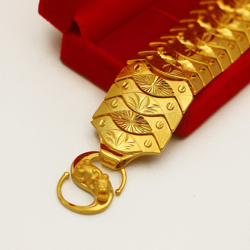 ✨Lắc tay nam to bản mạ 24k hoa văn sọc khóa tỳ hưu cao cấp A3