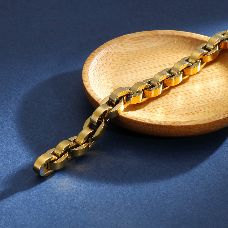 ✨Lắc tay nam - Vòng tay nam Tittan kiểu hoa mắt xích hạt bo cạnh - NV110
