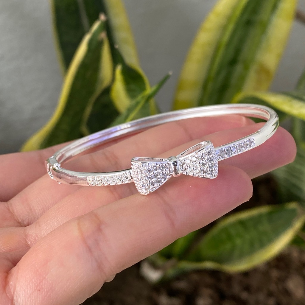Vòng Tay, Lắc Tay Nữ Dạng Kiềng Đính Nơ Xinh Bạc Thật 925 Chính Hãng BẠC HIỂU MINH LTU535
