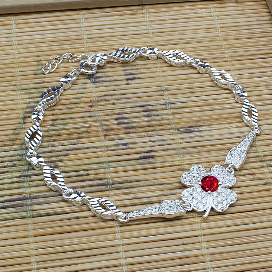 Lắc tay nữ cỏ 4 lá may mắn bạc ta LTU482W Bạc Hiểu Minh