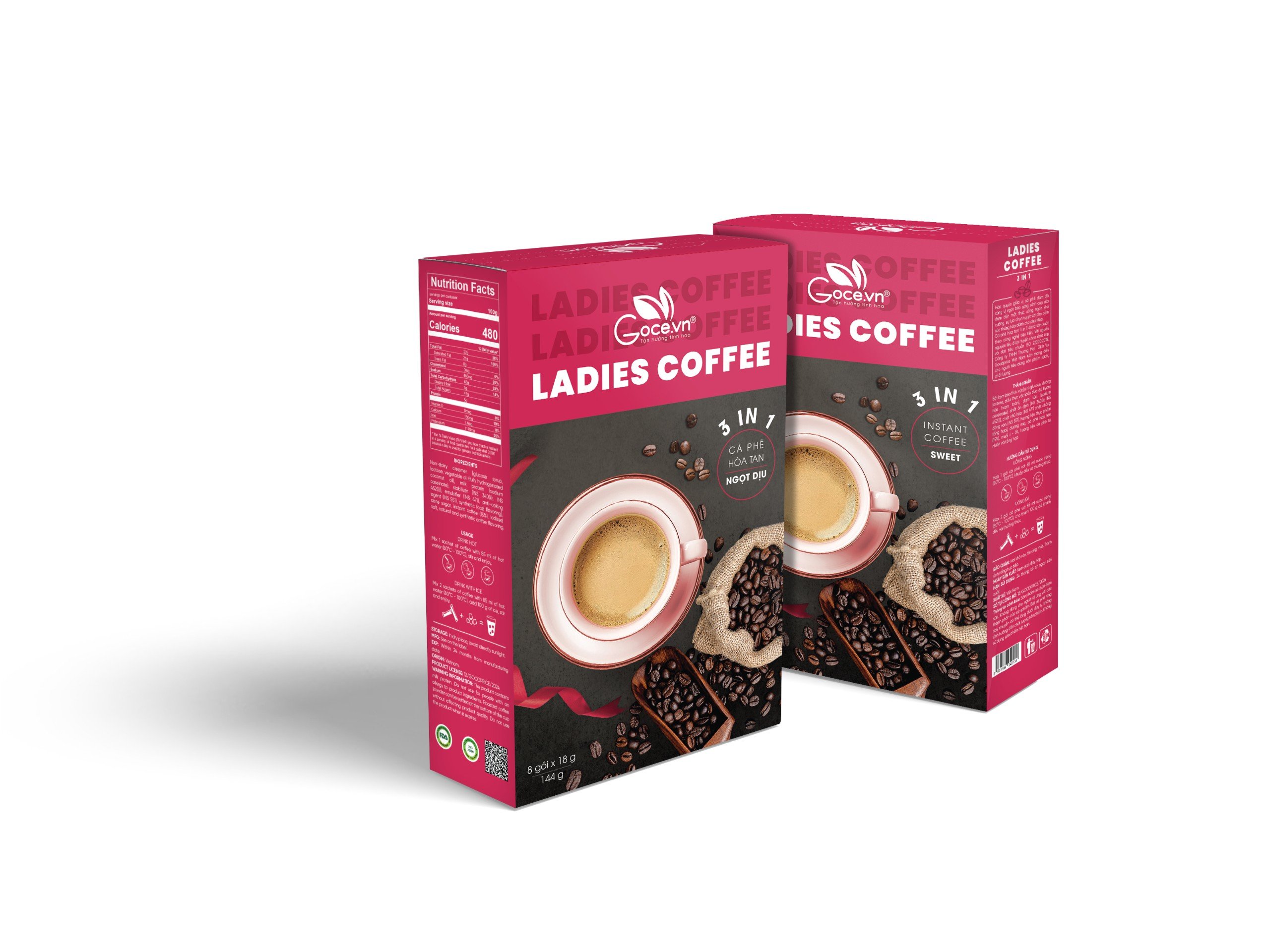 ✨Ladies Coffee Goce - Cafe Nữ hòa tan 3 trong 1 - 144g (8 gói x 18g)