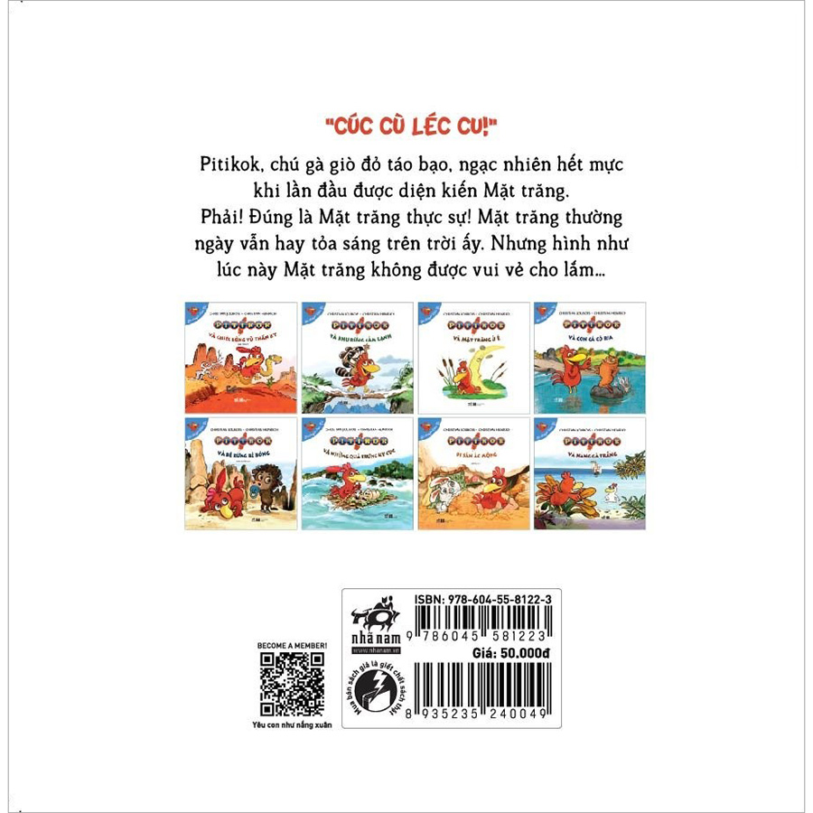 Mua tại TiktokBỘ SÁCH HÀI HƯỚC VÀ ĐẦY THÚ VỊ VỀ XÓM GÀ ĐÃ TRỞ LẠI VỚI CÁC BÉ ĐÂY! “Cúc cù léc cu!” Pitikok, chú gà giò đỏ táo bạo, ngạc nhiên hết mực khi lần đầu được diện kiến Mặt trăng.
