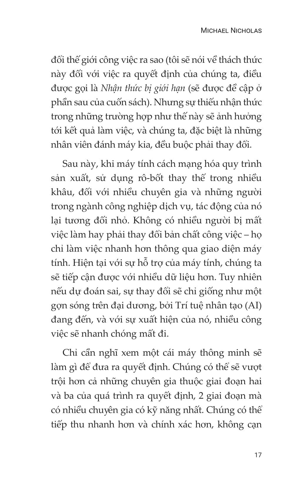 “Tôi thường không bao giờ quá phấn khích về mô hình ra quyết định hay cách viết nào, tuy nhiên, đây là một tài liệu tuyệt vời của Michael Nicolas. Cuốn sách là sự hợp lý toàn diện về lịch sử và giải thích về việc ra quyết định dựa trên cơ sở khoa học được minh họa bằng các ví dụ với những thông tin tuyệt vời, đúng thời điểm một cách kỳ diệu. Sau đó nó kết luận khá thuyết phục rằng theo cách thức mới, bất chấp sức mạnh của các giải pháp dựa trên trí tuệ nhân tạo đang nổi lên, vẫn cần tập trung vào tác động con người chứ không phải máy móc, và tiếp cận có ý thức làm cốt lõi. Tôi đặc biệt thích chương ‘Thử thách từ-trong ra-ngoài’.”