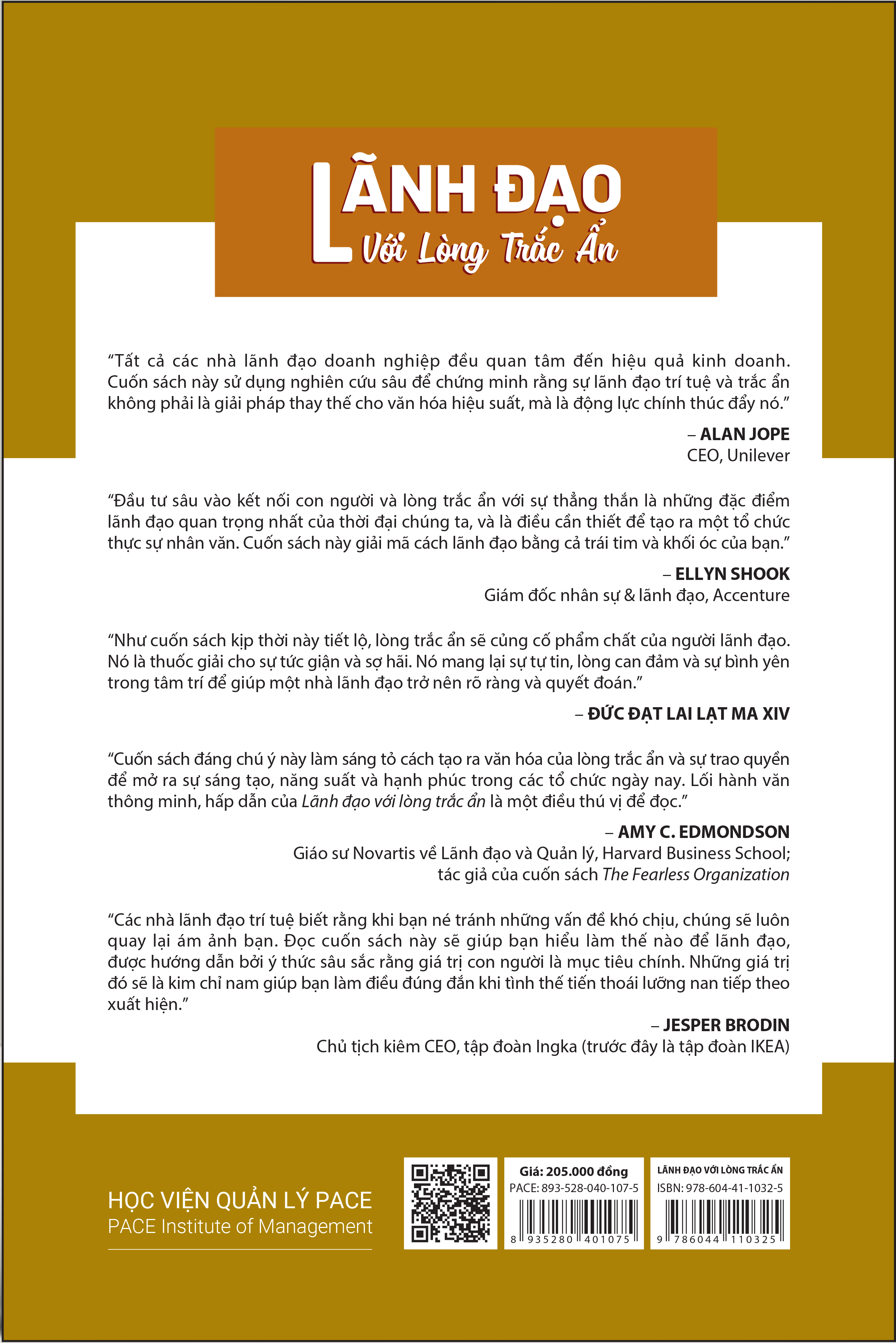 “Tất cả các nhà lãnh đạo doanh nghiệp đều quan tâm đến hiệu quả kinh doanh. Cuốn sách này sử dụng nghiên cứu sâu để chứng minh rằng sự lãnh đạo trí tuệ và lòng trắc ẩn không phải là giải pháp thay thế cho văn hóa hiệu suất, mà là động lực chính thúc đẩy nó.” - Alan Jope, CEO, Unilever