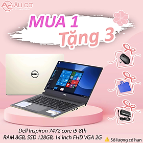Laptop Dell Inspiron 7472 – Hiệu năng mạnh mẽ, thiết kế tinh tế Cấu hình chi tiết: • CPU: Intel Core i5-8250U (4 nhân 8 luồng, xung nhịp tối đa 3.4GHz) • RAM: 8GB DDR4