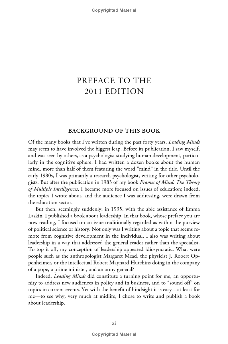 In Leading Minds , Gardner and his research associate at Harvard Project Zero, Emma Laskin, apply a cognitive lens to leadership, drawing on Gardner's ground-breaking work on intelligence and creativity to offer fascinating revelations about the minds of leaders and those who follow them. This reissue includes a new introduction by the author.