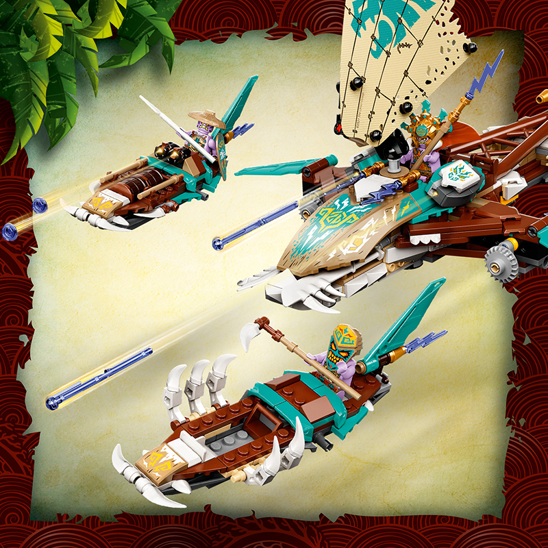 • Bao gồm 6 mô hình nhân vật thu nhỏ từ loạt phim truyền hình NINJAGO: Island Jay, Island Zane và Island Kai chiến đấu chống lại Chief Mammatus, Rumble Keeper và Thunder Keeper.