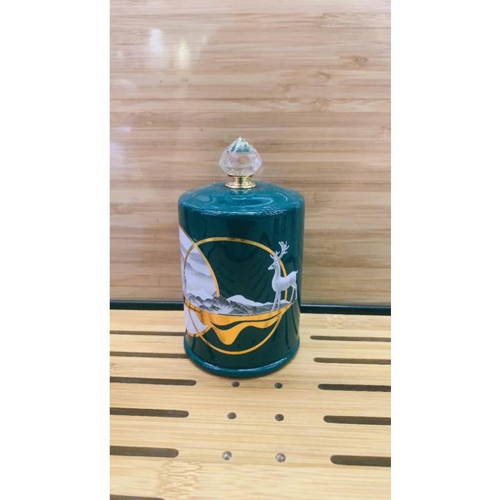 ✨LỌ ĐỰNG TĂM SỨ CAO CẤP XANH CỔ VỊT HỌA TIẾT HƯƠU NẮP ĐẬY ĐÍNH DÁ
