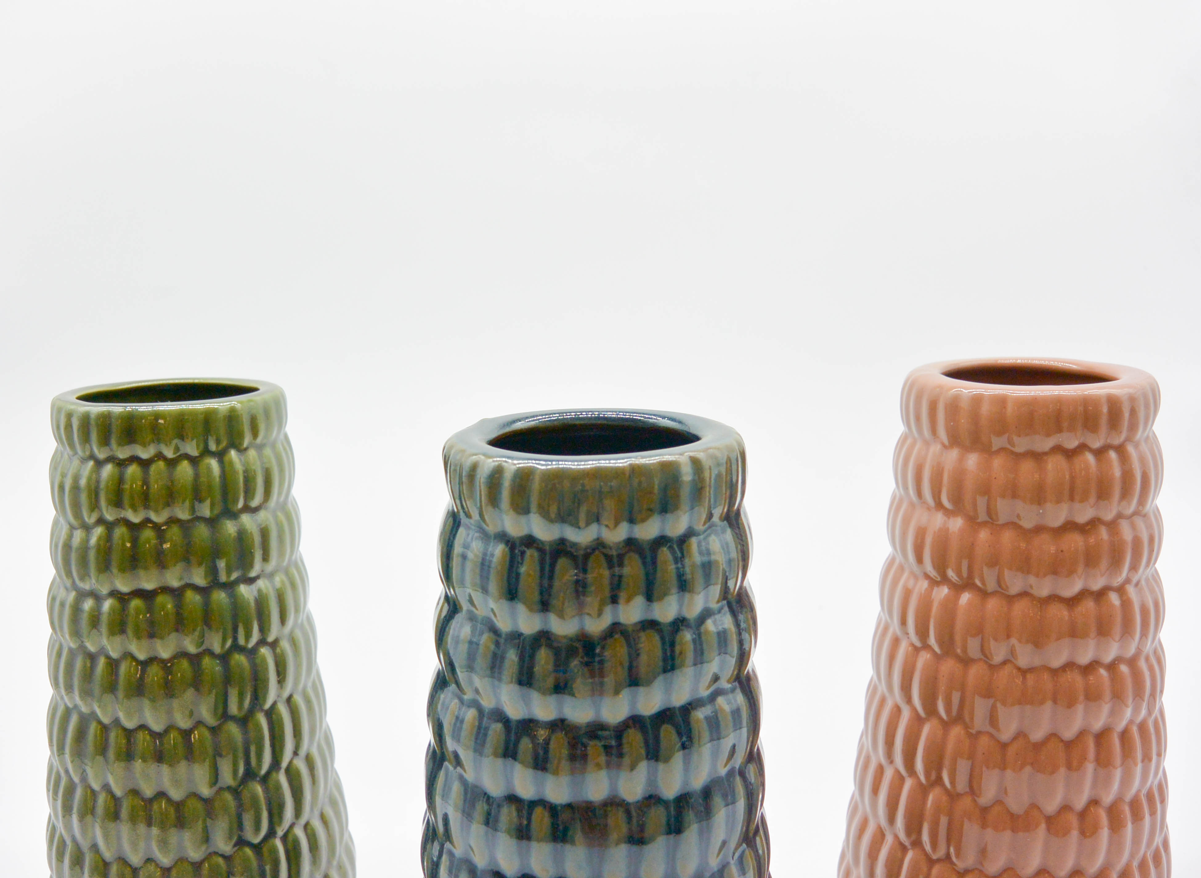 Sản phẩm gồm 2 lọ hoa miệng lượn. Chi tiết sản phẩm: Sản phẩm được phủ bởi lớp men rạng vừa cổ điển vừa sang trọng. Kết hợp với các họa tiết đắp nổi hình