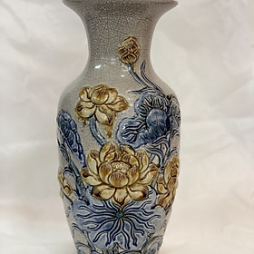 Lục bình sen men rạn đáp nổi Bát Tràng