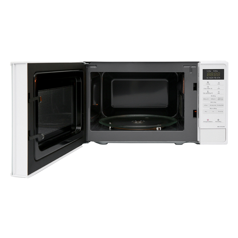 Lò vi sóng Panasonic NN-ST25JWYUE 20 lít kích thước nhỏ gọn, màu sắc trang nhã phù hợp với mọi không gian bếp Dung tích 20 lít có thể bỏ vừa gà nguyên con khoảng 1 kg Lò vi sóng đa