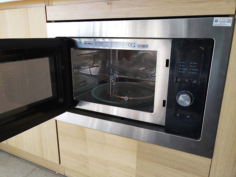 Thông số kỹ thuật: Lò vi sóng âm tủ KF-MC34L nhập khẩu có tích hợp thêm chức năng nướng, đáp ứng được nhu cầu vi sóng hâm nóng thức ăn và nhu cầu nướng đơn