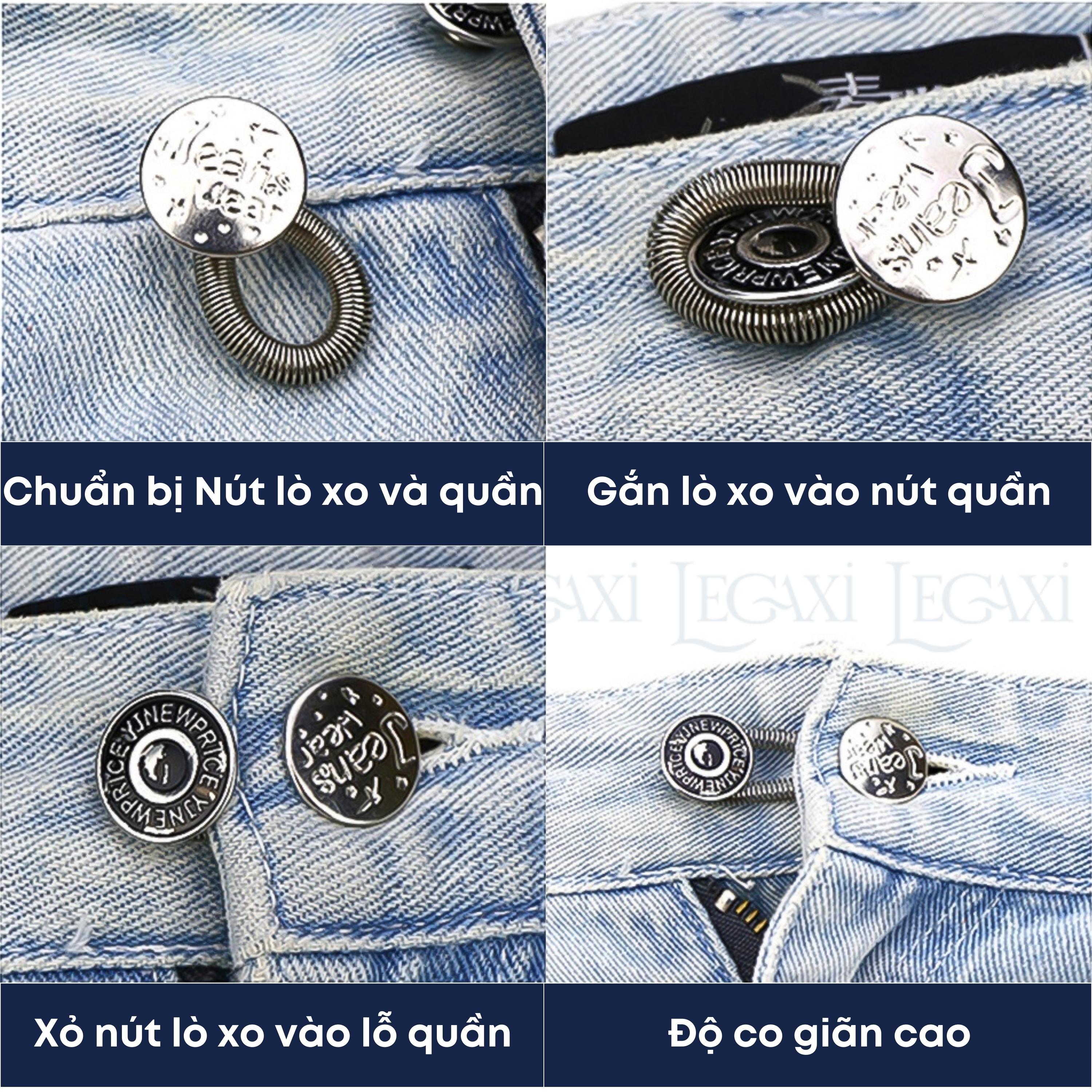 ✨Lò Xo Kim Loại Gắn Nút Nới Rộng Cổ áo Cổ Tay Áo Quần Jean Nam Nữ Nút Trơn Đen Đồng Không May Legaxi