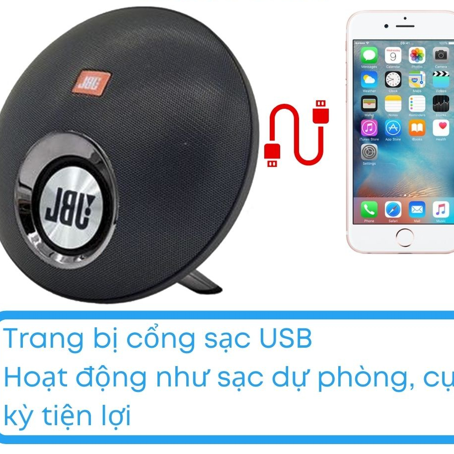 Kích thước : 19 x 17 cm Dung lượng pin sạc : 1200 mAh Công suất : 5W Lỗ cắm USB Lỗ cắm thẻ nhớ Đèn đổi màu theo điệu nhạc
