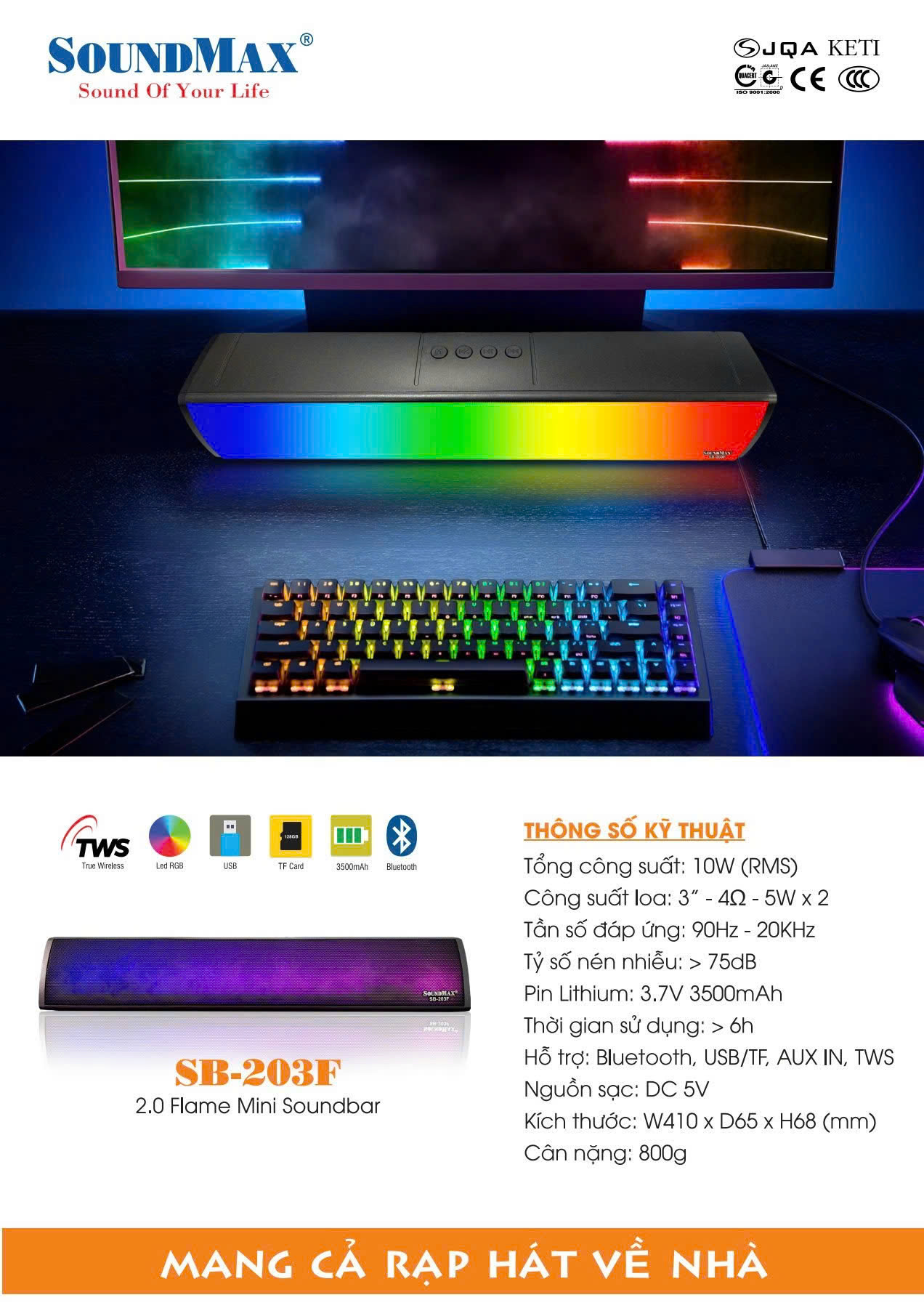 Loa soundbar SoundMax SB-203F/2.0 được làm từ vỏ nhựa màu đen giúp bạn sử dụng loa trong thời gian lâu mà không lo bị dẫn nhiệt. Kết nối đơn giản, dễ sử dụng thiết kế gọn nhẹ dễ dàng mang theo bất cứ nơi đâu.