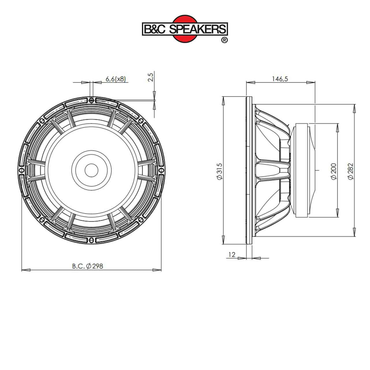 LOA RỜI 4 TẤC B&C Xuất xứ : ITALIA               Voice coil bằng đồng 3" (76mm) với chiều cao 16 mm Công Suất Program 400-800 W Dải