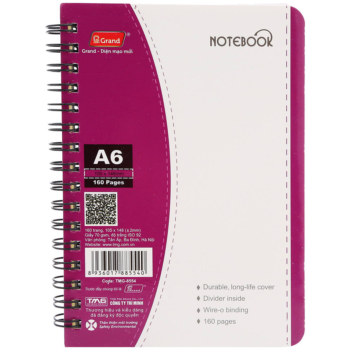 Lốc 2 Sổ Lò Xo Grand 8554 A6 - 160 Trang được thiết kế đẹp, sang trọng, chất lượng với chất liệu giấy cao cấp.