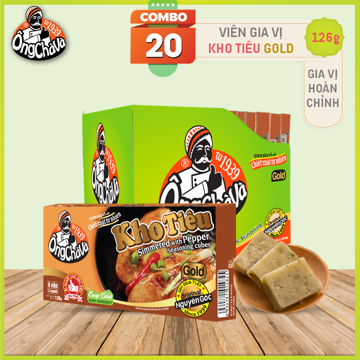 Viên gia vị Kho Tiêu 126gr là loại gia vị dạng viên cô đặc, giúp hương vị của món Kho Tiêu đậm đà, thơm ngon và đúng chuẩn hơn 1. THÔNG TIN SẢN PHẨM- Thương hiệu: Ông Chà Và.- Trọng lượng: 126gr....