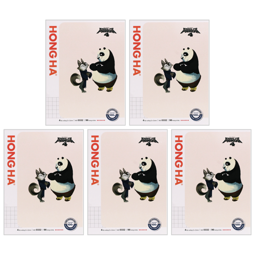 ✨Lốc 5 Tập Học Sinh Class KungFu Panda 4 - 4 Ô Ly Vuông - 96 Trang 100gsm - Hồng Hà 0332 (Mẫu Bìa Giao Ngẫu Nhiên) - Tặng Kèm 1 Cuốn Cùng Loại