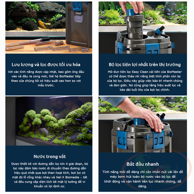 BioMaster 2 là phiên bản mới được thiết kế lại với các tính năng cập nhật, giúp đây trở thành bộ lọc hiệu quả và thân thiện với người dùng nhất từ trước đến nay. Hệ thống lọc kín bốn giai đoạn đẩy nước qua nhiều môi trường khác nhau để tối đa hóa sự phát triển của vi khuẩn có lợi và đảm bảo làm sạch kỹ lưỡng (lưu lượng dòng chảy tăng hơn 25%).