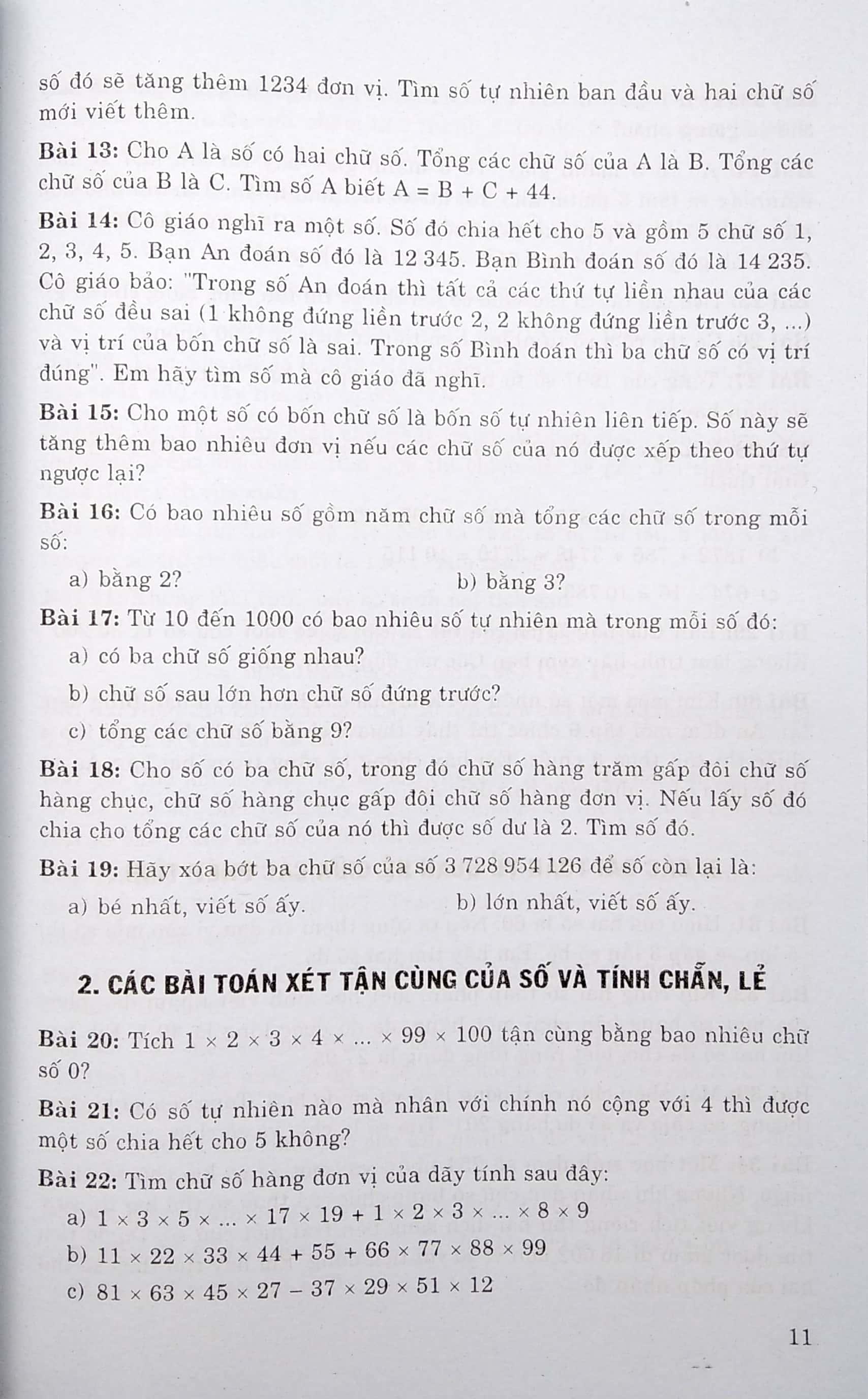 Mua tại TiktokSách này gồm 26 tiết đề cập đến 26 loại toán khác nhau. Đối với mỗi bài toán, bạn nên đọc thật kĩ đề, tìm hiểu cặn kẽ những đặc điểm của bài toán rồi tự mình suy nghĩ, cố hắng tìm ra lời giải, cố gắng tìm được nhiều cách giải và lựa chọn trong đó cách giải nào hay nhất. Sau đó mới tìm xem lời giải của bài toán mà sách đã nêu. Đa số các bài toán ở sách này đều là toán khó, trong đó có nhiều bài được rút ra từ các kì thi học sinh giỏi toán bậc tiểu học toàn quốc và các tỉnh, thành phố trong cả nước.