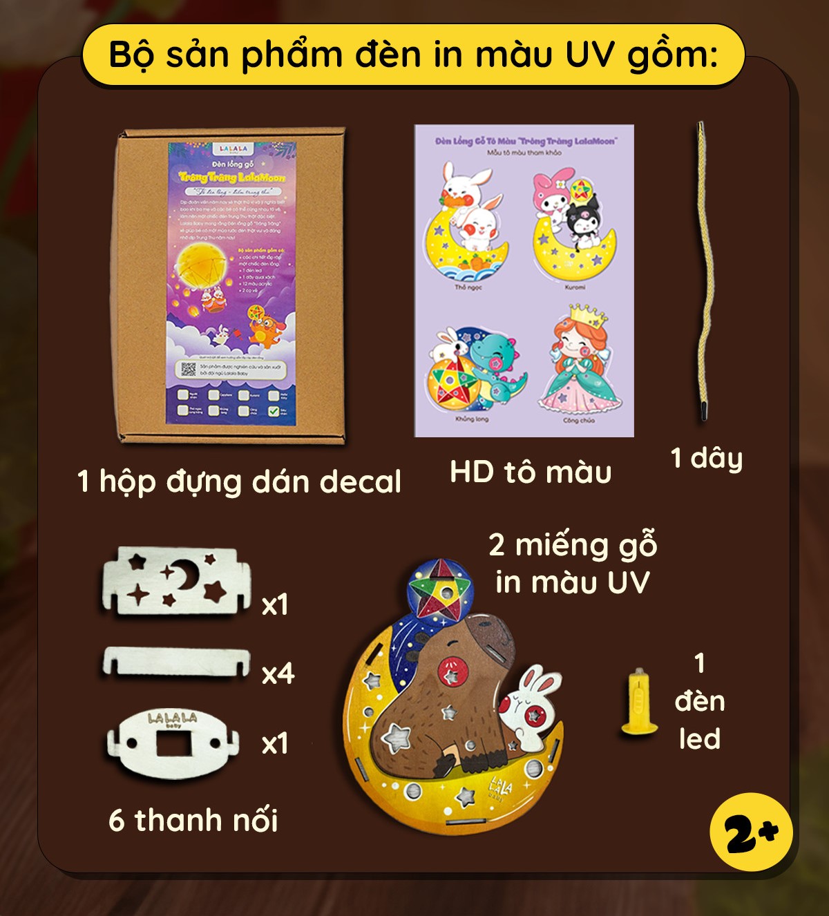 Thông tin sản phẩm:Đèn lồng gỗ Lalamoon trung thu bộ kit tự làm đèn Trông trăng tự do sáng tạo Lalala baby