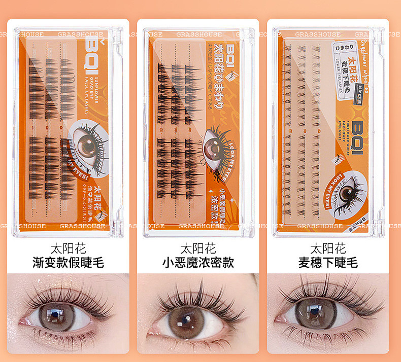 ✨Lông mi giả hoa hướng dương BQI cuống siêu mịn lông mi dưới 4-12mm cong dễ dùng cho người mới B7285