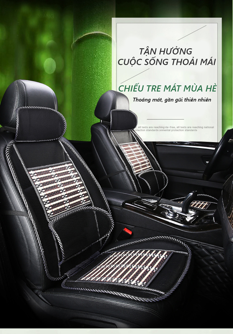 Thiết kế sang trọng vừa vặn cho từng ghế, phần tiếp xúc ngồi và tựa lưng được đan từ các thanh tre nhỏ đường chỉ đen phối, xuông quanh là lớp lưới đan êm ái, thoải mái khi ngồi nhiều giờ trên xe.