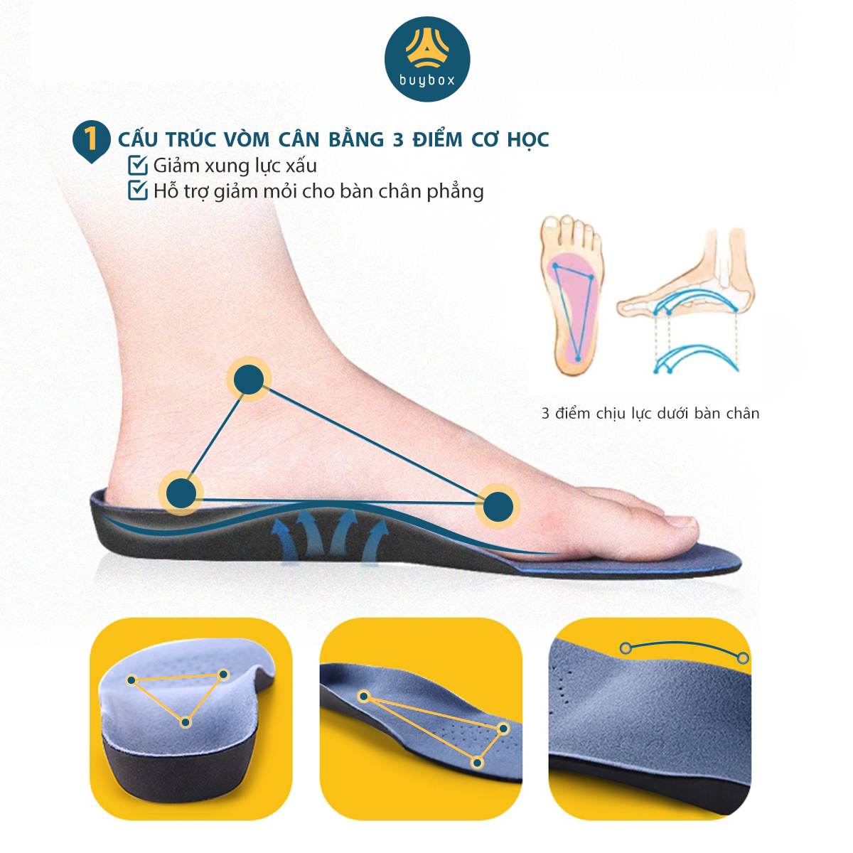 ✨Lót giày nam nữ êm chân bằng EVA cấu trúc vòm nâng đỡ lòng bàn chân, chống thốn và bảo vệ gót chân - buybox - BBPK177
